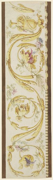 Curator: Well, hello there! At first glance, I think it feels warm, maybe sun-baked... and watchful. Editor: Quite! We're observing Maurice Pillard Verneuil's "Lézard" from 1897. The mediums used seem to be watercolor and colored pencil on drawing. There's an elegant balance of detail and almost stylized representation at play here. Curator: Verneuil captures the way light sort of dances on those lizards’ scales. Each of them looks like they’re posing for a photo shoot! A very stylish Victorian photoshoot at that! Editor: The composition creates a spatial tension. Note how the thorny plant in the foreground, rendered with assertive lines, juxtaposes against the softer gradations of the background rock and sky. This foreground functions almost as a repoussoir element, pushing our gaze toward the midground and distant sky, effectively constructing depth and atmospheric perspective within the confines of a flat plane. Curator: Exactly! Makes me think about observation... it's kind of like Verneuil wants us to study them, their patterns and little claws... it feels like Victorian fascination with natural history, but filtered through Art Nouveau’s sensibility. Almost like the illustrations in a scientific journal…but fancier, like someone put jewels on a microscope! Editor: The careful arrangements of botanical forms echo Art Nouveau's characteristic embrace of organic motifs, demonstrating a move toward flattened space. Coloration also plays a crucial role. The earthy browns and greens juxtaposed with the sky blue highlight, through contrasting hues, the very presence of these sunning reptiles. Curator: What stays with me is this feeling of just witnessing a slice of quiet, hidden life. And I love that it doesn't try to be something grandiose. It is more just intimate, thoughtful. Editor: The artwork demonstrates how visual languages evolve over time. Even though these approaches— careful observation alongside elegant lines— might clash at times, it certainly leads to compelling artistic outcomes.