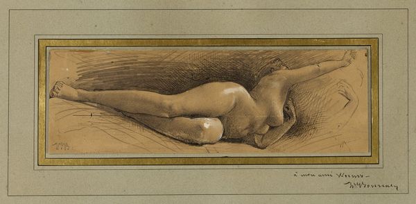 Joakim Skovgaard rendered this drawing of a plaster foot with brown wash on paper. The monochromatic palette casts an eerie gaze on the sculpture; its texture and form are foregrounded in the way it reflects light. The formal composition, with its raking light across the foot, guides our eyes from the defined toes to the smooth, truncated heel. Skovgaard seems less interested in the anatomical accuracy, and more in the interplay of light and shadow across the sculptural form. The dark background and lightly shaded foreground plane isolate the object, removing it from any familiar context. This encourages a semiotic reading, where the foot as a signifier takes on multiple meanings. It is both a study of form and a meditation on classical ideals of beauty, made incomplete and unsettling.