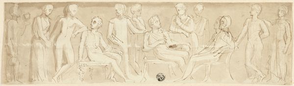 Anne-Louis Girodet's drawing, "Hermione Rejecting Orestes," presents a stark emotional tableau rendered with precise linearity. The composition is structured around the stark figures against the barest suggestion of a background, directing all attention to the drama unfolding. Orestes, the central figure, is almost collapsing into a chair, emphasizing her emotional turmoil. Notice how Hermione's pose—arms outstretched, body recoiling—creates a visual barrier, underscoring her rejection. The lines are sharp, defining the musculature and contours, giving each figure a sculptural presence, while the minimal shading lends an almost ghostly quality to the scene. The composition highlights a moment of intense psychological confrontation. Here, Girodet employs a neoclassical style not merely to depict a classical subject but to explore the profound psychological depths of his characters. The rejection is not just a plot point but a representation of the characters' internal conflicts. The piece destabilizes traditional heroic narratives by focusing on the raw, internal suffering of its characters.