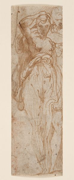 Editor: This intriguing pencil drawing, "Cello-Playing Woman," created by Reijer Stolk in 1906, possesses a captivating dreamlike quality. The woman's face is largely absent, while flowing lines envelop her figure and the cello. What do you make of it? Curator: It speaks of a confluence of musicality and feminine symbolism that permeates art nouveau. Look at how the lines both define and dissolve her form – is she the music, or is the music her? This faceless representation could evoke multiple readings; are we seeing idealized womanhood, distilled to pure essence of emotion, or is it something more unsettling, bordering on de-personalization? Note how these stylized waveforms—the flowing hair, the curves of her body—echo and almost become the sound waves themselves. Can you see the way the pencil lines hint at abstracted floral motifs as well? Editor: Yes, the merging of woman and instrument makes the entire composition feel almost…alive. Curator: Indeed! The instrument becomes an extension of her very being, embodying this deeply ingrained association of music with both feeling and feminine expression that threads through culture. Music-making becomes ritual, a practice channeling emotion that blurs reality and abstraction. Do you get that sense, that this is as much a cultural study as a study of an individual? Editor: Definitely. I now see a powerful depiction of women and artistic expression intertwining through shared cultural associations and symbol. Thank you. Curator: It shows the enduring ability of symbols to carry weighted cultural memory. Thank you for observing along with me.