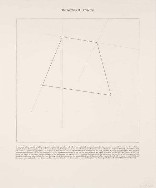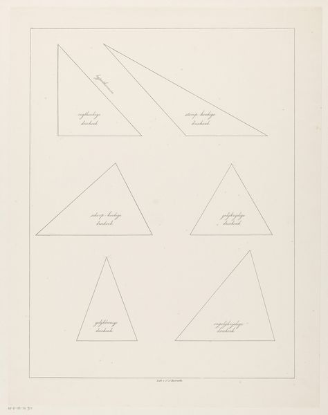 Curator: Here we have Jan Kubicek’s “Elementary Principles #3,” a drawing created sometime between 1970 and 1975. Editor: It’s…remarkably simple, isn't it? Two mirrored triangles hovering, or perhaps wrestling, over the blank page. Almost brutally minimal, yet there's a fragile kind of beauty. Like looking at a blueprint for silence. Curator: Yes, the minimalist aesthetic is key. Kubicek's work engages with the artistic and philosophical trends of the time. The focus was on reducing art to its most basic elements, rejecting expressionism in favor of pure form. We can think of its position within conceptual art, where the idea becomes the primary component of the artwork, more important than its aesthetic realization. Editor: Right, the *idea* of a triangle! Which, to be honest, I'm not totally against. But is there more to it than a thought experiment rendered in pencil? The precision, for example. It teeters on the edge of perfect, then subtly subverts it with faint, visible traces from its making. And for what? Curator: I'd argue that slight imperfection is precisely the point. These subtle flaws allow us to grasp the process involved in the drawing’s construction and the concept underlying its creation. And the institutional support for it –how museums legitimize minimalism as a movement... it's fascinating. The very act of displaying this, a drawing of such unassuming simplicity, asks questions of value and the role of art in the modern world. Editor: That's where it starts getting interesting for me. Is this "art" because it challenges preconceived notions of beauty? I find its openness… refreshing, as opposed to oppressive. It allows the viewer to become a collaborator, completing the composition. And maybe that’s where the meaning truly resides –in the interaction. Curator: Precisely. Its significance lies as much in its creation as in how the culture around it receives and interprets it. Kubicek asks the viewer to consider the foundational principles of visual representation and challenges the traditional hierarchy of artistic skills, which is one element of its cultural and historical context. Editor: Right, a deconstruction that's so… polite, you almost miss the revolution happening on the page! Curator: Indeed, and perhaps that's the revolution's staying power—its subtle invitation. Editor: A little push for thought! Nice.