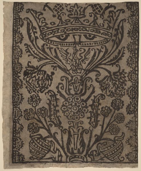 This fragment of an anonymous velvet wallpaper is decorated with the recurring motifs of a man on horseback, deer, and floral ornaments. The equestrian figure, reminiscent of ancient Roman equestrian statues, symbolizes power and nobility. This motif echoes in countless artworks across eras, from Renaissance tapestries to modern advertising, each time embodying a blend of authority and grace. The deer, a symbol of gentleness and the hunt, appears frequently in mythological and aristocratic art, often associated with nature and courtly life. Its depiction here reminds us of its diverse interpretations, from a sacred animal in ancient cults to a prized quarry in medieval hunts. The non-linear, cyclical progression of symbols like these, with each resurfacing, evolving, and taking on new meanings in different historical contexts, embodies the persistence of cultural memory and the dynamic interplay between past and present.
