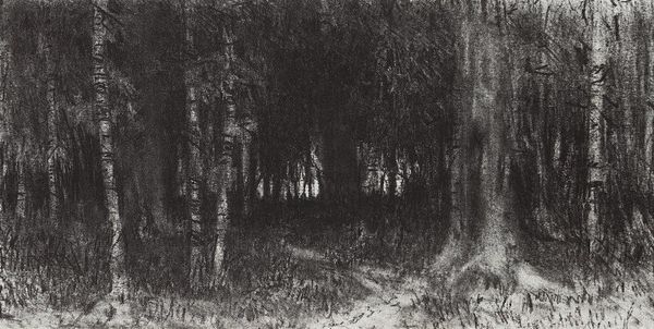 Isaac Levitan, a Russian landscape painter, made this drawing titled 'Trunks of the Trees,' using charcoal, during a time of significant social and political change in Russia. Levitan was part of a generation grappling with questions of national identity, and for him, the Russian landscape held profound emotional and spiritual significance. As a Jew in a society marked by anti-Semitism, Levitan often felt like an outsider. Perhaps that’s why he turned to nature. In this drawing the stark contrasts create a sense of depth and mystery. The dense, almost claustrophobic arrangement of trees evokes a feeling of being lost or enclosed, a sentiment that might resonate with experiences of marginalization and exclusion. Levitan's forest becomes a space where personal introspection meets broader questions of belonging and identity. It invites us to consider the relationship between the individual and the environment, and how both are shaped by forces of history and culture.