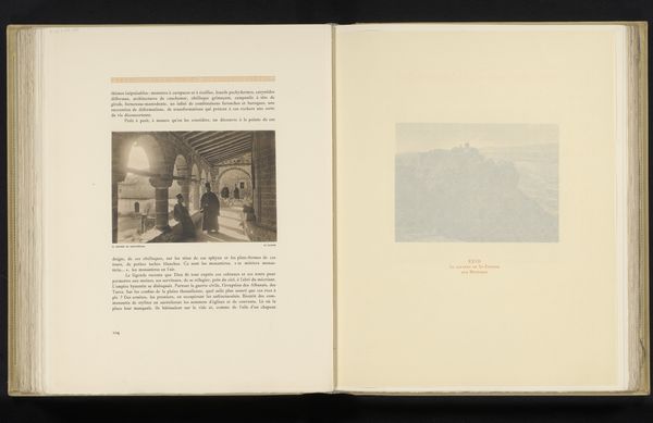 Curator: Here we have Frédéric Boissonnas's photographic print, "Gezicht op het klooster van Agios Stefanos in de Meteora," dating back to before 1910. The albumen print captures a landscape view. What’s your immediate impression? Editor: It’s almost otherworldly. There’s a stoic monumentality in how the built environment merges with the natural forms. The monochromatic palette and sharp contrast evoke a powerful sense of solitude and enduring strength. Curator: Indeed, the stark tonality lends a sense of timelessness. Note how the photographer utilizes a tight crop to flatten the pictorial space. The strategic placement of the monastery atop the rock formations creates a dynamic interplay of shapes. Consider the contrast between the sharp lines of the architecture and the rugged texture of the cliffs. Editor: The symbolism of elevation is impossible to ignore. Monasteries are built on rock formations, on elevated heights to be closer to the heavens, to stand guard as a symbolic defense. The photographer's deliberate choice to frame it this way only reinforces this sentiment of a fortress both physical and spiritual, enduring over time. The hazy valley in the distance adds to that contrast, as though it exists in an altogether separate world. Curator: It is an exercise in the geometric potential of line, form, and space—a formal testament to composition and perspective. Editor: Beyond the aesthetic qualities, the image speaks to the enduring power of faith. This landscape, photographed through the lens of orientalism, tells a story of resilience, cultural continuity and how the man seeks the divine through monumental endeavors, literally raising the house of God above the mundane. Curator: I concede it possesses the allure you describe, though for me, the success rests on how the photograph deftly explores the visual and material qualities of space and form. Editor: A compelling blend, wouldn’t you agree? Curator: Yes, the juxtaposition of stark form and implicit symbol make it rather fascinating.