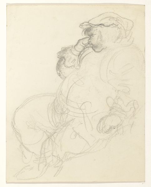 Editor: This is Gustav Klimt’s “Two Studies for a Crouching Woman,” created around 1914-1915. It's a pencil drawing, and the two figures, one above the other, seem almost melancholic or perhaps contemplative. What do you see in this piece beyond its immediate aesthetic qualities? Curator: The positioning of these women is incredibly potent when contextualized with Vienna’s social climate during the early 20th century. Klimt was working amidst burgeoning feminist movements, but also within very rigid social structures that limited women’s autonomy. Editor: So, their pose... is it a reflection of something? Curator: Exactly! The "crouching" posture can be read as both vulnerable and self-protective. It embodies the societal pressures women faced: the expectation of demureness versus the burgeoning desire for self-determination. Look at how the lines are almost hesitant, unfinished – does that suggest anything to you? Editor: Perhaps it's capturing a moment of in-between, a transitional period? The loose lines kind of blur the women, they lack solidity... Curator: Precisely! Their ambiguous, almost spectral presence speaks volumes. And think about the Symbolist movement influence here. Klimt uses the figure as a vehicle for conveying deeper psychological and societal undercurrents. These women aren’t just portraits; they are embodiments of a complex struggle for identity. Editor: This makes me look at Klimt differently. It’s easy to get lost in the decorative aspects of his paintings and miss these subtle comments. I am starting to see that Klimt was part of a conversation much broader than what initially meets the eye. Curator: Absolutely, and that conversation continues. Considering the piece today, how does the representation of the female form resonate with contemporary discussions about gender and power? That is where the real learning happens.