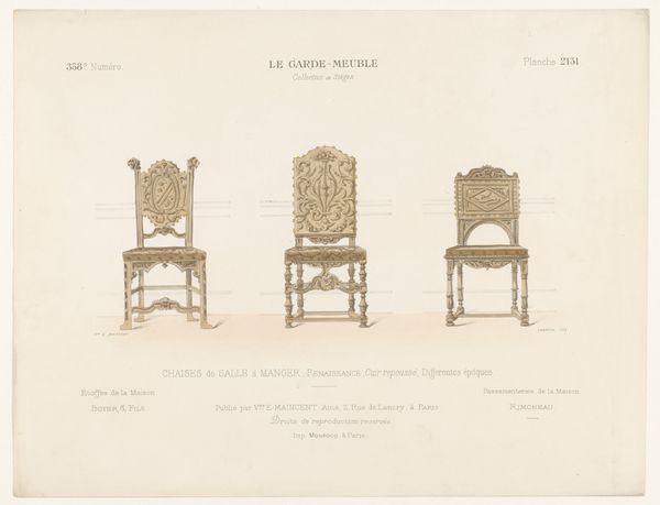 This 'Fauteuil en stoel' by Léon Laroche is an antique design drawing, most likely made with ink and watercolor. The chairs sit there on the page, delicate and light, their pale color scheme of pinks and creams creating a soft, almost dreamlike quality. The furniture seems to whisper, rather than shout. Look closely, and you'll notice how the details are meticulously rendered, with each line contributing to the overall sense of elegance and refinement. It’s like a dance of details, creating a harmonious balance. Now, compare these renderings to Picasso's line drawings. It’s like seeing a wisp of an idea take form, or a ghost of an object emerging from the paper. What Laroche and Picasso share is an interest in how art is a conversation across time. It’s a reminder that art embraces ambiguity, inviting us to explore its multiple layers of meaning.