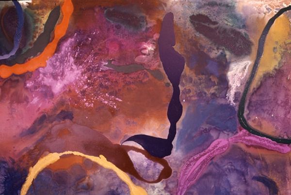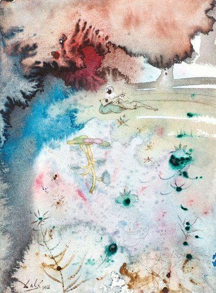 Curator: Requena Nozal’s "Celeste II," created in 2006, certainly grabs the eye. It's rendered in acrylic on canvas. My initial reaction is how powerfully the high-contrast palette and soft shapes work against one another. It almost feels as though I'm peering into an emotional world. What do you make of it? Editor: The most immediately striking feature for me is the texture—or, perhaps, the *implied* texture. The layers of diluted acrylic suggest a watercolor technique, offering a soft effect, yet it’s painted on canvas. I am wondering about the physical act of its making—this illusion of fluidity. Curator: The juxtaposition of delicacy with raw, bold geometric shapes can invite introspection. Blue, in particular, speaks to contemplation. Looking at "Celeste II", are we seeing celestial forms hinted through the artist’s vision of abstraction? How are these shapes imbued with historical meaning? Editor: Perhaps. The scale of this work must have been considerable to manipulate the acrylic in a way that suggests freedom. One could be seeing its materiality not as celestial symbolism but just as the raw components involved with industrial paint manufacturing in dialogue with color-field painting’s ideas about large-scale fields of emotion. Curator: That's a very grounded perspective, focusing on materiality. My eye sees motifs within the blots of pigment—a dove perhaps? Or a veiled face? How much do cultural memory and inherited understanding contribute to what we believe is abstract, to begin with? Are these symbols deeply ingrained or purely incidental? Editor: Interesting. Though acrylic is commonly used now, the time investment in masking areas on the canvas to create hard lines against these more atmospheric forms had its process too, creating its cultural artefact through human action and production. And look how thinly these have been applied. Curator: Perhaps the very notion of 'Celeste' speaks of humanity's inherent urge to find symbolism and meaning where none might intrinsically exist. Editor: That very well may be—I must say that having focused on its making, I may look again at its potential symbolic message after this!
