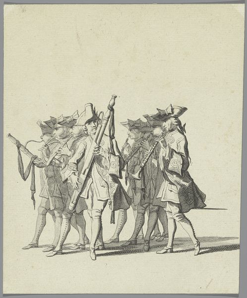 Jean-Baptiste de Grateloup created this tiny etching, Caprice, of three figures with their muskets in 1808. The musket, a symbol of power and readiness, has a long history, evolving from crude firearms to more sophisticated weapons. We see the legacy of martial prowess depicted in the armed strides of these men. Throughout art history, depictions of arms are an echo of cultural memory. Think of classical antiquity's spears and shields, or medieval Europe's swords, each reflecting their era's unique technology and psychology. The men's posturing indicates their awareness of the weapon's capabilities, suggesting both confidence and potential anxiety. The gun may have evolved, but its psychological and cultural weight remains, engaging our subconscious as a potent symbol. As a symbolic form, we have witnessed its non-linear progression throughout art history, adapting and resurfacing with a new significance as societal structures change.