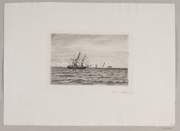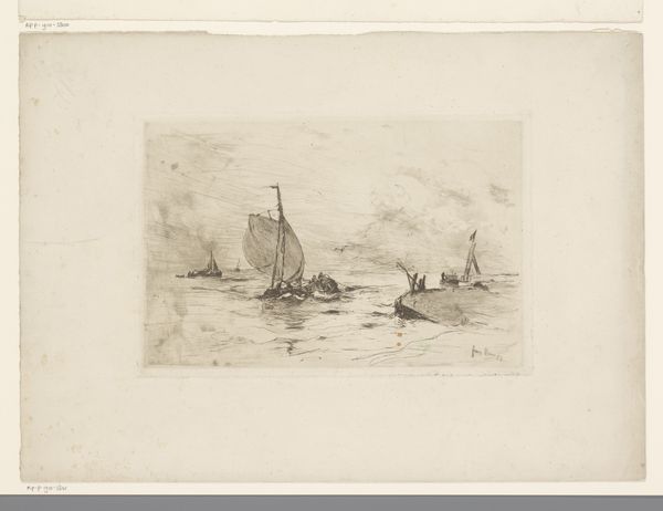 Carl Locher made this print, Storm in the North Sea, using etching – a process involving biting lines into a metal plate with acid, then inking and printing. Here, the etched line takes centre stage. The work has a very direct, almost documentary feel. The stormy sea is captured with a sparse, scratchy method. The choppy waters and stormy sky are rendered using the inherently linear nature of the etching process. The material qualities of the print - its monochrome palette, its stark contrasts - heighten the drama of the scene. It's as though we are there in the turbulent North Sea alongside those sailors. The image also speaks to a wider social context. Maritime trade was essential to the Danish economy. By emphasizing the physicality of the print and the labor involved, we appreciate the depth of the artwork.