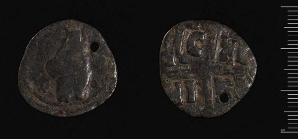 Editor: Here we have an Anonymous Follis from the Harvard Art Museums. It's fascinating to consider how much cultural weight can be carried by a single coin. What can you tell us about the symbolism at play here? Curator: This follis speaks volumes. Notice the depiction of Christ Pantocrator on one side, a powerful image of divine authority. The reverse is inscribed with text, likely a prayer or invocation. Consider how these symbols – Christ, the written word – would have shaped the daily lives and beliefs of those who used this coin. How does that resonance strike you? Editor: It's amazing to think about the constant reinforcement of those beliefs through something as mundane as currency. Thank you! Curator: Indeed, a potent reminder of how symbols permeate our world, then and now.
