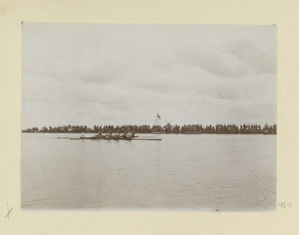 Curator: Looking at this gelatin silver print, I’m immediately struck by the sheer number of figures clustered on the makeshift pontoon bridge. It evokes a palpable sense of activity. Editor: Indeed. We’re looking at "Port Royal, Rappahannock River" captured by Andrew Joseph Russell, likely taken sometime between 1861 and 1865 during the American Civil War. Now in the collection of the Metropolitan Museum of Art, this photograph provides a valuable glimpse into the war's logistical infrastructure. Curator: The materiality of the photograph itself – that smooth surface – contrasts so sharply with the rough labor it depicts. Imagine the workers constructing that pontoon bridge. What timber did they use? Was it sourced locally or transported from elsewhere? That effort feels absent as one contemplates the polished final result, which almost certainly ended up circulating as war propaganda. Editor: Absolutely, it played a key role in shaping public perception. The image presents a vision of Union progress, ingenuity, and control. However, beyond that surface-level read, we might ask: who exactly are we seeing in this photograph, crossing that precarious bridge? Are they soldiers? Civilians? Enslaved people compelled to work for the Union army? Their identities and experiences are obscured. Curator: Precisely. And the boats are essential too, both for what they carry – probably vital supplies, ammunition, maybe even displaced individuals – and for the industrial labor they embody. Notice the smokestacks on one of them: these weren’t quaint paddle-wheelers for pleasure cruises; they signify the mobilization of manufacturing. Editor: The placement within the historical narrative is also vital. Remember, photography during the Civil War served many roles: documentation, memorialization, but most critically, information management and even psychological warfare. The Union needed to showcase its technological capabilities to demoralize the Confederacy. Curator: Yet the realism so embraced, evident in every imperfection and gritty texture, presents complexities and nuances beyond propaganda. Consider, what of the social contexts excluded: the suffering and hardship experienced, labor injustices and, for many of those visible, life in refugee camps? The stark contrast of beauty and truth begs us to ask; how much agency over their own lives did any of the figures depicted possess, ultimately? Editor: And it reminds us that photographs, especially those disseminated through powerful institutions, are always carefully constructed arguments as much as documentary evidence. "Port Royal, Rappahannock River" certainly isn’t an exception, its message of progress intentionally highlighting strength in industry at a crucial juncture. Curator: I appreciate how reflecting on material circumstances enables such deeper contemplation of its societal impacts and purposes. Editor: Understanding the image through its time gives context to the photographer's point of view and the era.