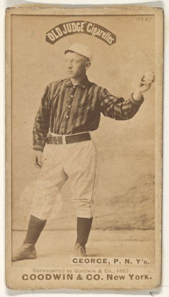 Goodwin & Company produced this photograph of Pete Gillespie, a left fielder for New York, as part of the Old Judge series of baseball cards, which were included in cigarette packs. It was a time when the burgeoning popularity of baseball intertwined with the aggressive marketing of tobacco. Gillespie, caught mid-motion, embodies the physicality and grace associated with the sport, yet it's crucial to remember that the narrative of baseball at this time often excluded people of color. While players like Gillespie were becoming public figures, the color line was firmly drawn, reinforcing racial segregation. The photograph, then, is a complex artifact, celebrating an individual achievement within a system of inequality. The commercial nature of the image—an advertisement for cigarettes—reminds us of the powerful forces shaping leisure and consumption in the late 19th century. Consider, as you look at Gillespie, the stories of those whose opportunities were unjustly limited.