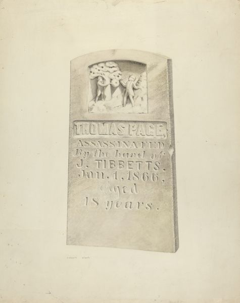 Editor: Here we have Johannes Wilhelmus Franciscus Offenberg’s 1880 gelatin-silver print, “Grafzerk van G. J. A. van Booven”, a photograph of a gravestone. I’m immediately struck by its simple composition. It seems to memorialize someone, but what I don’t understand is, why take a picture of a gravestone? What story could it possibly tell us? Curator: Precisely. These funerary photographs were very much embedded in the Victorian era’s mourning culture, becoming especially prevalent with advancements in photographic technology. Consider how widespread photography was becoming; portraits offered a semblance of immortality, even for the middle class. These kinds of images allowed people to maintain a tangible connection with the deceased, participating in a very public grieving ritual. Does that shift your perspective? Editor: Yes, that helps contextualize it. I guess, with photography still being relatively new, having even this image of a gravesite was a significant thing, and taking pictures was a performative social ritual. Was there a religious significance as well? Curator: It certainly ties into existing Christian beliefs around remembrance and honoring the dead. What is interesting is how the act of photography changes these rituals. The reproducibility and distribution of photographs could arguably democratize the mourning process, moving away from more exclusive religious displays to allow a wider participation. Does thinking about photography's cultural accessibility influence how you view it as a record of death? Editor: Absolutely, it transforms the photo entirely. Before, I saw it as just a picture of a gravestone, but now I see it as a piece of social history. Curator: It becomes less about the individual, perhaps, and more about the collective performance of grief in an era of social and technological transformation. Editor: Thanks, that’s definitely given me a new appreciation for it.