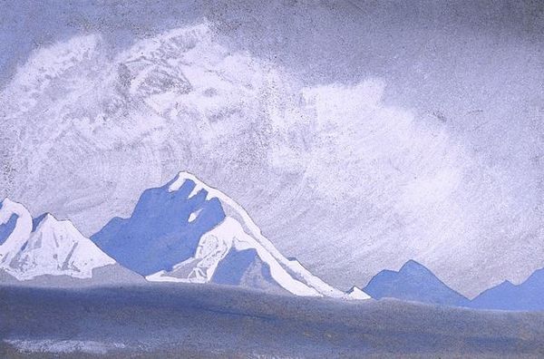 Nicholas Roerich painted this image of the Himalayas, a mountain range that extends across Asia, separating the plains of the Indian subcontinent from the Tibetan Plateau. Roerich’s paintings of the Himalayas reflect his spiritual quest. In the early 20th century, many Westerners were drawn to Eastern philosophies and religions, seeking alternatives to the perceived materialism of Western society. Roerich and his wife Helena were followers of Theosophy, a spiritual movement that blended Western and Eastern religious traditions. The movement’s emphasis on universal brotherhood and the search for ancient wisdom resonated with the Roerichs. The Himalayas, with their towering peaks and remote locations, became a symbol of spiritual aspiration. Roerich saw the mountains as a gateway to higher consciousness and a source of profound spiritual insight. These paintings offer not just a visual representation but an emotional and spiritual experience. They invite us to contemplate the sublime beauty of nature and our place within the universe. The Himalayas served as a mirror reflecting his spiritual journey.