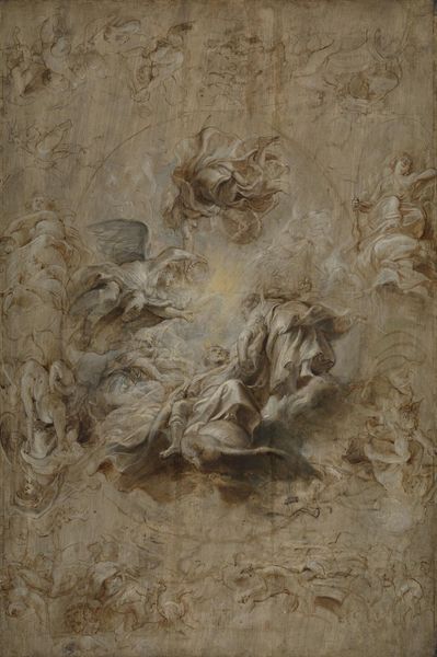 Peter Paul Rubens created this oil on canvas of “St. Gregory of Nazianzus” during the Baroque era, a period marked by religious and political conflict. In the painting, St. Gregory, a figure of authority, stands triumphant, his gaze directed downwards. Rubens uses dramatic light and shadow to highlight Gregory’s dominance over a subdued figure, likely symbolizing heresy or evil. An angel floats above, adding to the divine spectacle. Rubens himself was deeply embedded in the social structures of his time, serving both as a court painter and a diplomat. His personal beliefs and the expectations of his patrons heavily influenced his artistic choices. The representation of power and the triumph of the Church would have resonated deeply within the religious and political context of the era. The painting certainly reflects the societal values of the time, yet it also invites us to consider the emotional and personal dimensions of faith and doubt.