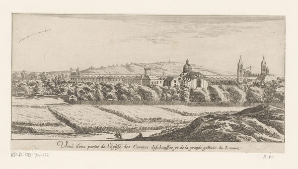 Israel Silvestre created this etching of the village of Tanlay and its castle. From a high vantage point, Silvestre captures an extensive landscape rendered with delicate lines and careful attention to spatial depth. Notice how the composition is structured around a clear recession from foreground to background, guiding our eye through the scene. The formal arrangement emphasizes a contrast between the detailed depiction of the castle and the more generalized treatment of the surrounding landscape. This contrast serves to highlight the castle's architectural complexity and its dominance over the environment. Consider how Silvestre uses line and shading to define the forms of the buildings, creating a sense of volume and texture. The semiotic function of such formal choices is to communicate a specific vision of power, where landscape is ordered according to aesthetic and ideological principles. The landscape, therefore, is not merely a backdrop but a constructed representation of social hierarchy.