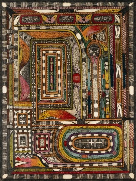 Here is the audio guide text for the artwork: Hundertwasser made this, 816 Switch Board, with mixed media, and I just love the way he let the process be so visible. The lines aren't perfect; they wiggle and wobble, almost like they're breathing. Looking at the colors, there’s this electric combination of reds, blues, and yellows, all bumping up against each other. The texture feels almost like a topographical map, with layers and layers of paint creating depth, like he built up the painting over time. There’s this one little red squiggle near the center that seems to be pulling everything in. It’s as if Hundertwasser is inviting us to get lost in the details. Hundertwasser’s work always reminds me a bit of Gustav Klimt, with their shared love of ornamentation and vibrant colors. But Hundertwasser has this raw, almost untamed quality that makes his work so unique. It’s a reminder that art doesn’t always need to be polished; sometimes, the messiness is where the magic happens.