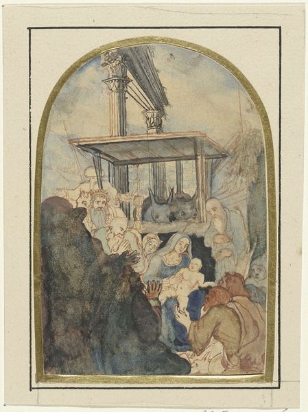 Luc-Olivier Merson created this illustration for Victor Hugo’s novel “Notre-Dame de Paris”. It portrays a dramatic scene, likely from the book, showing a crowd and two figures elevated on a platform. Painted in France, this image reflects the cultural fascination with historical narratives and the Gothic style, a revival very popular at the time. Victor Hugo's novel significantly contributed to this movement, romanticizing the medieval period. Merson's illustration visually aligns with this trend, idealizing characters from the book and the building that gives it its name. We might consider how institutions like the École des Beaux-Arts, where Merson taught, shaped artists' approaches to historical and literary subjects, and how art academies and exhibitions promoted specific styles. Detailed study of the period’s literature, historical records, and art criticism allows for a deeper understanding of art as a reflection of its social and institutional context.