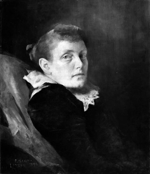 This is Herman Vedel's portrait of a young girl, an oil on canvas, now at the Statens Museum for Kunst. The painting strikes us with its somber palette dominated by blacks and greys, giving it a melancholic feel. Vedel masterfully uses chiaroscuro, the interplay of light and shadow, to sculpt the figure, highlighting the girl's face and hands against the dark background. Consider the structural dichotomy at play here. The stark contrast isn't just a visual effect; it’s a semiotic device. The girl's luminous skin, framed by dark clothing, draws attention to her gaze. This gaze, direct and unwavering, invites us to decode the signs of identity and representation. We are left to ponder the silent narratives that Vedel embeds within the formal elements of his composition.