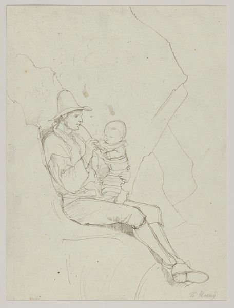 Curator: Here we have a pencil drawing from between 1873 and 1932, titled "Kind van Wilhelmus Johannes Steenhoff aan de borst van zijn moeder," which translates to "Child of Wilhelmus Johannes Steenhoff at his Mother's Breast." It's currently housed at the Rijksmuseum. Editor: It has this incredibly tender and almost fragile feel, doesn’t it? The delicate lines really capture the intimacy of the moment. Curator: Indeed. Note the composition – the mother and child are positioned centrally, almost filling the picture plane. This compositional choice immediately draws our eye and directs our focus entirely on their shared space. Also, observe the economy of the line, the sheer art of suggestion rather than concrete description. It has a symbolic and emotional depth that moves beyond a representational likeness. Editor: And you really sense the hand of the artist, don't you? It’s clearly a sketch, a work in progress, evidenced by the toned paper showing through. You can almost trace the artist’s movements, his process of building up the image. Look at how the softness of the pencil creates a gentle atmosphere, perfectly mirroring the bond it depicts. How was the work likely circulated, how many studies preceded it and by what labor was this family supported? Curator: The drawing operates on a deeply psychological level, don't you agree? It evokes thoughts of motherhood and vulnerability using minimal means and the image itself is so universally recognizable, like an archetypal scene that transcends its specific context. Editor: Precisely. I appreciate the rough and unfinished texture—it is more a record of its production than it is anything else, showing the artist grappling with the reality of maternal connection and the very labour required for that connection, turning the paper into something tender but fundamentally made by physical efforts and time. Curator: Thinking about Steenhoff’s other work, you begin to see how his formalism is actually rather modern. It’s a beautiful, economical distillation of pure emotion into line and form. Editor: Yes, it offers such a stark contrast between subject matter and the raw evidence of its handmade origins, and it compels us to remember it’s the means and process of material artistic endeavor we must attend to. Thank you.