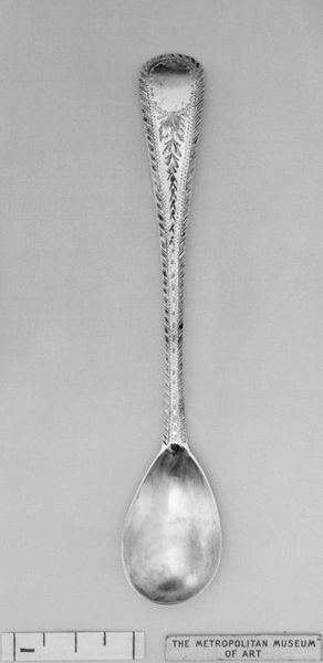 These twelve spoons were made by Paul de Lamerie, probably in London, entirely of hand-wrought silver. Silver is a wonderfully ductile material, meaning it can be easily worked and shaped. The silversmith would have used a variety of hammers to forge the metal, gradually coaxing it into the desired form. Note the subtle shaping of the spoon's bowl, handle, and the delicate cast ornament where the two elements join. Each of these features required specialized skills, ones acquired through years of apprenticeship. These spoons testify to the close relationship between craft and commerce in the 18th century. De Lamerie was one of the leading silversmiths of his day, catering to a wealthy clientele eager to display their status through beautifully made objects. While seemingly simple, these spoons represent a complex interplay of material, skill, and social aspiration. Appreciating them fully means recognizing the labor and the cultural context embedded in their creation.