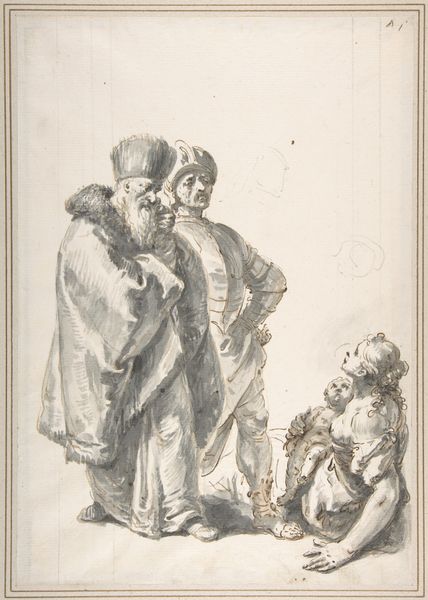 Adam von Bartsch created this etching of four men in "oriental costume" in 1795. These figures invite us to consider the European fascination with the "Orient" and the politics of representation that accompanied it. Fashionable dress, particularly that of non-Europeans, was a common theme in the graphic arts of the late 18th century. These images often reflected and reinforced existing social hierarchies and power dynamics. Bartsch, an Austrian artist working in Vienna, would have been acutely aware of the Ottoman Empire and its complex relationship with Europe. The artist's choice of etching, a printmaking technique, suggests a desire for reproducibility and wide dissemination of the image. The image speaks to issues of cultural appropriation and the construction of identity through dress. By consulting sources such as fashion plates, travel literature, and diplomatic records, we can gain a deeper understanding of the cultural context in which this etching was produced and its role in shaping European perceptions of the "Orient."