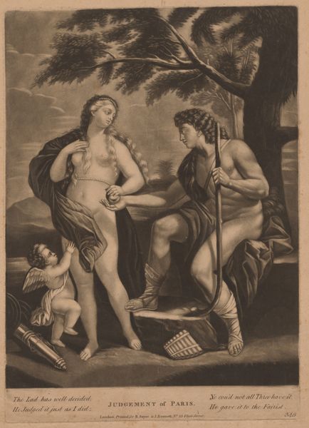 Curator: Let's discuss this oil on canvas from 1632, "Venus and Cupid" by Guercino. A classic pairing rendered with, shall we say, characteristic Baroque flair? Editor: Baroque flair, indeed! My first impression? It's... oddly unsettling. Venus seems almost resigned, and Cupid looks far too pleased with himself, aiming an arrow that's already struck. It's as if love has already caused some damage. Curator: Ah, but consider the symbolic language at play. Venus, draped yet exposed, is the epitome of beauty and desire. Cupid's arrow, typically a symbol of love, here pierces not a heart, but what appears to be a symbolic shield, implying a victory of passion over resistance. Editor: I see your point. Still, there's something about Venus' gaze – it lacks the triumphant sensuality I'd expect. More like she is reflecting on some unfortunate outcome. Or has she seen the dry cleaning bill for that velvet cushion she’s leaning on? Curator: Interesting observation. The muted palette, especially the russet drapery, speaks of a grounded sensuality rather than overt hedonism. This Venus is not simply an object of desire; she embodies mature love, with its accompanying complexities and compromises. And the composition reflects the visual conventions of Italian Renaissance. Editor: Grounded sensuality... I like that. And there’s this visual tension. Cupid bursts forth into the airy, idyllic scene. Venus is more closely connected to some strange drama in the background that mirrors some strange conflict inside herself. Curator: It echoes, perhaps, the inner struggles inherent in love itself—the tension between idealized romance and the messy reality of human relationships. Note also Cupid's pose. Far from angelic, there's a robust energy that some might call cheeky! A cherubic trickster. Editor: Exactly! A very Baroque brand of mischief, with heavy, muscular energy—which definitely disrupts that airy innocence you’d expect from Cupid. He’s a total show-off! This definitely reveals new meanings each time you look at it. Curator: It's a painting that invites layers of interpretation, blurring the line between allegory and human emotion. The success and impact is a sign that there is cultural memory alive, and images like these keep meaning from past cultures flowing to our current generation. Editor: Absolutely! “Venus and Cupid” leaves you pondering the aftermath of love. Definitely lingers in the mind longer than expected.