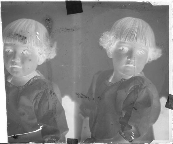 This image, by Paul Gittings, is an eight by ten inch print of a little girl in a bonnet. It's an odd photo, and it seems to be a negative print, which, for me, pulls the image into abstraction. I'm interested in the way Gittings is playing with surface texture here. We can tell this is a photograph and not a painting through the flatness of the space depicted. The dark shadows which render the little girl three-dimensional also emphasize the artificiality of the composition. The girl is holding a doll with both hands, it looks almost like she is praying. The doll’s head is lit up as though it is a lightbulb. It's as if the light is coming from within the doll and reflects off the surface of the child's face. I wonder if Gittings knew the work of someone like Diane Arbus, who also found ways to expose the artificiality of portraiture while evoking an emotional response. Both artists leave space for many interpretations.