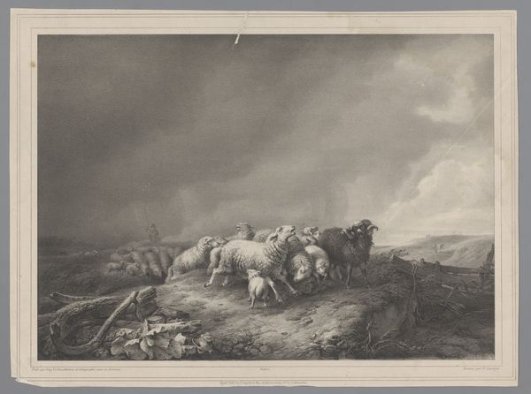 Johan Daniël Koelman created this artwork of a herder and his flock using etching and possibly other techniques. The appearance of this print is rooted in the labor-intensive processes of etching, where lines are incised into a metal plate, and aquatint where tonal areas are created using acid. The stark contrasts and textural richness are achieved through carefully controlled biting of the plate. The printmaking method is very much tied to social issues of labor, as it is a process involving specialized skill, time, and physical effort. The artist is not only depicting the labor of the herder, but also engaging in his own form of production, highlighting the work involved in the creative process. In that sense, this print challenges distinctions between fine art and craft.
