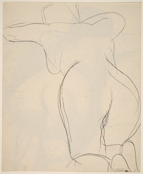 Editor: This graphite drawing, "Steigerend paard met figuur op de achtergrond" by Leo Gestel, looks like it captures a horse rearing up, with a suggested figure in the background. It feels really dynamic and immediate. What's your take on this? Curator: I see the frantic energy conveyed by the rapid application of graphite less as an end in itself, and more as revealing of the historical moment, the very act of image production under duress or perhaps against tight deadlines, particularly relevant in the interwar period of 1891-1941. This drawing reveals how constraints can shape aesthetic choices, particularly the consumption habits of art viewers at the time. Editor: Consumption habits? So you’re saying how it was made impacts how it was received? Curator: Exactly! Think of the labour involved. Why graphite? Was it cheaper, faster, more readily available than oils? What kind of patronage drove Gestel to prioritize speed and efficiency? It wasn't simply about depicting a horse; it was also about engaging in the cultural and economic structures surrounding artistic creation. The gestural application of material indexes production costs as a vital element of both art-making and spectatorship. Editor: So by looking at the material, we can understand the forces at play during its creation. That’s fascinating! I usually focus on just what the drawing shows. Curator: Shifting our focus to material allows us to challenge these notions of "high" and "low" art as separate spheres, as they are all caught within systems of materiality, labour, and consumption. By seeing them together, we create different dialogues around what these images once were, and what they could be for the future. Editor: That makes me rethink how I look at art in general, understanding the story embedded in its materials. Thank you. Curator: Indeed! By studying artistic media as embedded within a particular socio-economic-political field, it enables a more thorough engagement with the life of a piece.