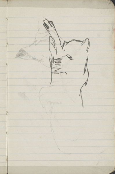 This is George Hendrik Breitner's "Studie", a sketch, date unknown, currently housed in the Rijksmuseum. The drawing presents a figure, possibly in motion, sketched with rapid, confident strokes on lined paper. Breitner's use of line is striking; it's both minimal and suggestive, capturing the essence of form without intricate detail. The composition is dynamic. The figure seems to emerge from the page, engaging with the surrounding space through the energy of the lines. This approach aligns with the late 19th-century artistic movements that sought to capture the fleeting moments of modern life. The lined paper beneath the sketch adds another layer. It reminds us of the everyday nature of the study. The artwork destabilizes the traditional concept of a finished drawing. Instead it celebrates the process and the raw energy of artistic creation. It invites us to contemplate the interplay between the artist's intention and the artwork's form.