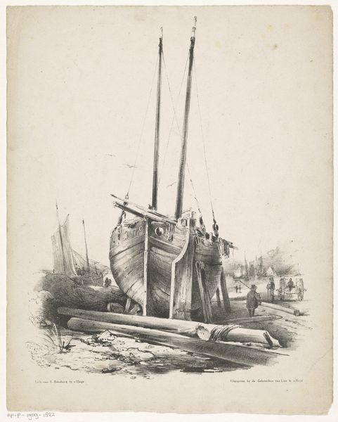 Editor: Okay, so we're looking at "Spotprent op de vorming van een conservatief ministerie met een liberaal achtergrond," which roughly translates to "Cartoon on the Formation of a Conservative Ministry with a Liberal Background," created in 1873 by Johan Michaël Schmidt Crans. It's an ink and pen drawing, quite detailed. It strikes me as both comical and critical. What exactly is going on here? How do you read this artwork? Curator: Ah, this piece is a delightful jab at political maneuvering. Imagine a group of rather disgruntled men straining with all their might to hoist... what appears to be a rather unstable political structure? You'll notice the phrase "Conservatief Ministerie" dangling precariously above, while at the base we see "Liberale Beginselen". Editor: It seems like they're struggling quite a bit. And one of them appears to have completely lost his grip! Curator: Precisely! Crans uses the metaphor of construction to comment on the awkward coalition between conservative and liberal factions at the time. The instability and struggle depicted suggests the inherent difficulty, perhaps even impossibility, of reconciling such opposing ideologies. Almost a satire in artistic form, don’t you think? Like watching a tragicomedy unfold, right before our eyes! And the tools scattered on the deck! Has something been dropped in dismay, perhaps? Is that one figure literally “out”? Ask yourself: what does Crans mean when including these seemingly small clues? Editor: Definitely feels like things are about to fall apart. It's interesting how a simple drawing can convey such a complex political message. The pen and ink really amplify that sense of urgency and slight chaos, too. I hadn't considered all the layers to it. Curator: Art is all about layers, isn't it? This piece reminds us that even seemingly simple sketches can be powerful social commentary and reveal all sorts of hidden messages from the past. It also highlights that universal sentiment; politics and alliances always appear more challenging on the inside, than from afar! Editor: I’ll remember that, thanks.