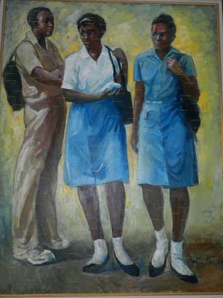"At the clinic" was painted by George Pemba in 1979, reflecting South Africa during apartheid. Pemba, a Black artist, often depicted the daily lives and struggles of Black South Africans, whose stories were largely ignored by the dominant white culture. The painting shows a clinic waiting room filled with Black patients, a scene of everyday life that was nevertheless charged with political meaning under apartheid. The figures embody dignity and resilience in the face of systemic inequality. Pemba’s choice to focus on community spaces suggests a desire to celebrate the collective strength and mutual support within the Black community. The emotional depth of "At the clinic" lies in its portrayal of hope amidst adversity. Pemba once said, "I wanted to record the way of life, the hardships, and the joys of the people around me." This quote encapsulates his commitment to depicting the full spectrum of human experience within the context of apartheid. The painting serves as both a historical document and a testament to the enduring human spirit, reminding us of the importance of representation and the power of art to bear witness to injustice.