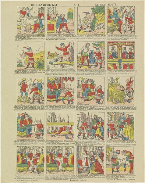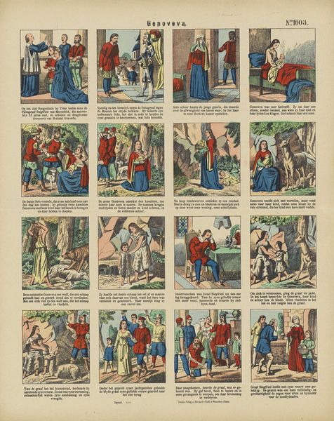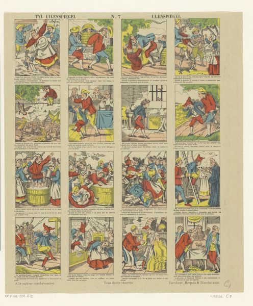 Curator: Take a look at this fascinating print by Pellerin & Cie, entitled "Mr. de la Palisse," dating approximately from 1791 to 1900. It's a captivating piece of graphic art. Editor: My initial impression? It's surprisingly humorous. The sequence of images gives off the feel of a tongue-in-cheek storyboard, yet it looks as though it's printed on paper that’s showing its age. Curator: Exactly! It presents a series of vignettes featuring the titular character. It would be good to dive into the intersection of historical narrative and caricature. Think about how gender roles are depicted and the social commentary embedded in each panel. Editor: You’re right. Considering Pellerin & Cie. as printmakers, I wonder about their production methods? The repeated imagery and textual additions evoke early mass production, democratizing access to satire in ways that shift away from individual, artisanal approaches. What about its wider availability and how it played a role in public opinion? Curator: Good question. This era witnessed significant social upheaval and challenges to aristocratic power. The humour targets these specific types, highlighting potential societal fractures or anxieties of the time. How might contemporary feminist theory, in fact, enable a reinterpretation of the character of Palisse and his relationships? Editor: Well, thinking materially, there must have been some process by which to render illustrations and their captions together with efficiency, meaning that decisions made by the illustrators probably weren’t based so much on their skill and finesse, but whether their methods could match output requirements and reduce the level of complex artistry. Curator: Yes, and how does this print fit into our broader narratives about gender, race and politics? How did prints such as this perpetuate stereotypes and reinforce hierarchies, or, in some cases, challenge them? Editor: Perhaps examining the materiality and manufacturing also illuminates something. Maybe we discover that by making images consumable and available, people's interaction with art altered substantially. Curator: Ultimately, this image allows us to rethink the power of satire and to question how narratives are shaped by the historical moment, the production process, and the prevalent ideologies. Editor: It's amazing how a simple series of images, analyzed through the lens of production and social context, can lead us to question established narratives and to consider the multifaceted ways in which art reflects—and affects—society.