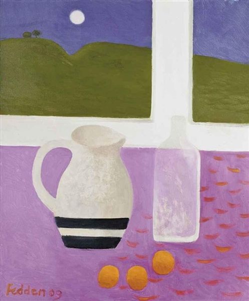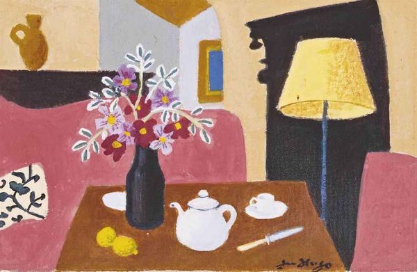 Jean Hugo made this painting of an interior, with a red armchair, sometime in the 20th century, using oil on canvas. It's got this wonderfully flat, almost stage-set kind of vibe, and the colors are so muted and earthy, like faded frescoes. The texture is really something – thick in places, especially where those blocks of color meet. You can almost feel the brushstrokes, like the paint was applied with a palette knife. Take a look at that big vase on the left, with the tiny plant springing out of it - there's a kind of awkwardness to it, but the color really sings out from the pinky-purple ground. It's as if Hugo is more interested in the act of painting than in creating a perfect representation. This reminds me of Morandi's still lifes, those humble arrangements of bottles and jars, where the real subject is the light and the way it transforms everyday objects into something almost mystical. Art, like life, is all about seeing and finding those moments.