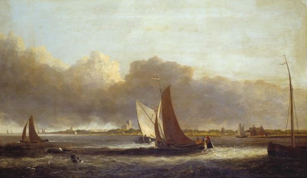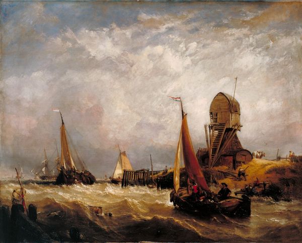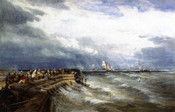 Andreas Achenbach painted "Damage to the Old Pier" in 1851, using oil on canvas. Immediately, your eye is drawn to the roiling sea, rendered in dynamic brushstrokes that capture the water's turbulent energy. The pier itself is depicted as fractured and disrupted. Achenbach masterfully uses the contrast between the natural elements and man-made structures to explore themes of the sublime, a popular concept during the Romantic period. The fractured pier serves as a semiotic marker, symbolizing the precariousness of human endeavors when confronted by nature's force. The artist’s choice to depict this particular moment of destruction suggests a deeper commentary on the human condition. The painting operates as a signifier of broader cultural anxieties about industrialization, human fragility, and the overwhelming power of the natural world. It's a powerful statement, reminding us of the constant interplay and tension between humanity and its environment.
