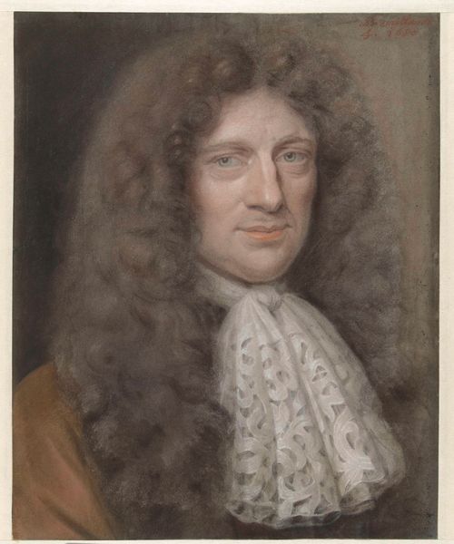 Constantijn Huygens the Younger likely made this self-portrait using graphite on paper. It's a traditional art material, but in the 17th century, graphite wasn't as readily available as it is today, so its use speaks to Huygens's privileged status. The softness of graphite allows for the creation of subtle tonal variations and delicate lines, perfectly capturing the sitter’s likeness. The material gives the portrait an intimate, almost ephemeral quality, making the viewer feel as though they are gazing at a fleeting moment in time. Consider the labor involved in producing graphite. The process of mining, refining, and distributing it was often exploitative, relying on the labor of marginalized communities. By understanding the social context of the materials used, we can appreciate the complexities and contradictions inherent in the creation of this artwork, and challenge the traditional distinctions between fine art and craft.