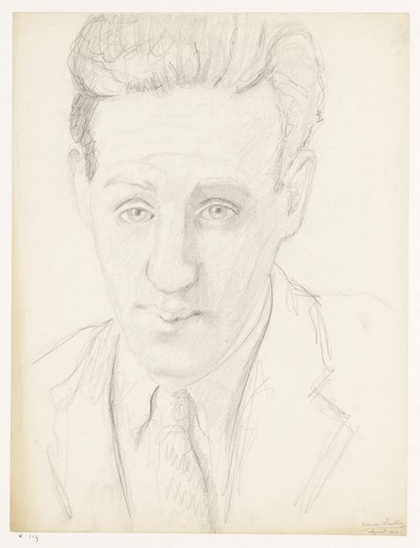 Curator: This striking gelatin-silver print, taken in 1925 by Alfred Stieglitz, presents us with a portrait of the writer Jean Toomer. My first impression? It's incredibly intimate, almost like a stolen moment. The stark contrast and close framing lend it a vulnerability. Editor: There’s a compelling ambivalence to it. I find it less about vulnerability and more about a poised self-possession. The gaze is direct, almost challenging the viewer to truly understand him. I think it embodies the Modernist interest in capturing the psychological state of the subject. Curator: You’re right, the intensity is palpable. Knowing Toomer's literary work, his exploration of identity and the complexities of the African American experience in the early 20th century, do you see that mirrored in Stieglitz's portrayal? Editor: Absolutely. Stieglitz was deeply engaged in documenting the cultural landscape of his time. Consider, this portrait was made during the Harlem Renaissance, a pivotal movement where artists and intellectuals were redefining black identity. A symbol of the changing American demographics. Curator: Precisely! The choice of stark black and white intensifies this. By minimizing extraneous detail, Stieglitz guides our focus to Toomer’s face, making the symbolism so strong that it evokes layers of narrative: personal, cultural, historical. Editor: The cloudscape in the background almost feels like a metaphor too, doesn’t it? Shifting, amorphous... reflecting the fluid nature of identity itself. In a moment, an instant, capturing a time of great socio-political complexity. Curator: It speaks to Toomer's own grappling with his racial identity, too. He sought to transcend categorization, identifying simply as American, while his work grappled with the nuances of racial experience. And perhaps, that is what Stieglitz aimed to immortalize with the help of his camera? A single captured, unreplicable moment. Editor: A photograph laden with nuance and history – it captures the Modernist era’s introspective mood perfectly, a moment from an individual to an entire social turning point. Curator: For me, revisiting this work has highlighted how art continues to serve as a time capsule, preserving complex personal and collective identities. Editor: Agreed. It serves as a stark reminder of the power of portraits in art.