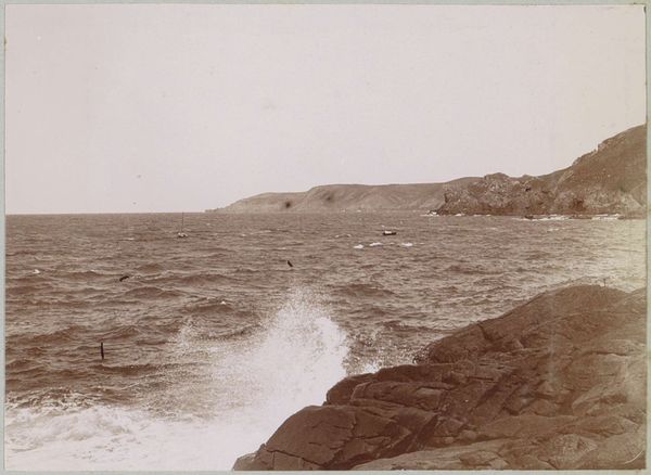 This photograph titled "Gezicht op Pointe du Raz" was made by Delizy. The rocks jutting out from the sea create a moody scene. The cool tones really set the tone, it's almost as if the artist has found a way to show us what it feels like to be alone with the elements. Look closely, and you will notice the way the photographer captures the surface of the water, that looks like it's moving and churning. You can almost feel the spray of the waves on your face. The different textures here - the rough stone against the smooth water - make this image feel so tactile and real. The picture looks a little like a painting by Courbet, or one of those other 19th century landscape artists. Remember, with art, it's not about getting one single answer, but about opening up different ways of seeing.