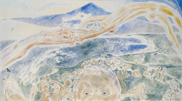Curator: Looking at Paul Gauguin's "Tahitian Shore [verso]," circa 1900, I’m immediately struck by its ethereal quality. It feels like a dreamscape, rendered in muted earth tones. Editor: Indeed. And knowing Gauguin's complicated relationship with Tahiti adds a layer of complexity. This piece speaks to the idealization and perhaps also the exploitation inherent in his gaze upon the island and its people. What’s really interesting here is the process. It's labeled a print, maybe watercolor or oil pastel on paper... it really exemplifies a mixed-media approach, a hands-on quality that almost contradicts the exotic subject. Curator: I agree. You see the rapid strokes and layering, giving it this unfinished feeling, but intentional rawness. Was he striving for immediacy? Was this piece perhaps part of a broader exploration of depicting Tahiti, reflecting on the nature of representation itself in relation to colonized spaces and subjects? Editor: Absolutely. His choices were very deliberate. It forces you to consider the artist's hand and material constraints and resources. Did he have access to high-quality pigments, and what kind of paper did he use, given the era? These material decisions influenced the aesthetic and what could and couldn't be represented within the work. He didn’t present an accurate account of the islands, he created his version, a European one. Curator: The visible underpainting, the watercolour bleed... the composition seems quite simplistic, perhaps deliberately, as if Gauguin wished to present an idyllic paradise unspoiled by civilisation. Editor: Yet this notion of “paradise” was being bought and sold, romanticized to serve the European artistic community and an art market eager for something “new." And by calling it “Tahitian Shore,” it further cements this notion that places can belong to and be owned by people, transformed into an object through art, ripe for commercial consumption. Curator: I think understanding both the creation and reception of artworks allows us to see a piece beyond just its aesthetic value. Editor: Precisely. This watercolor on paper prompts us to consider Gauguin's practice within its historical context, the very institutions shaping the art we get to experience now. It helps demystify how those politics are materialised in a piece such as "Tahitian Shore [verso]".