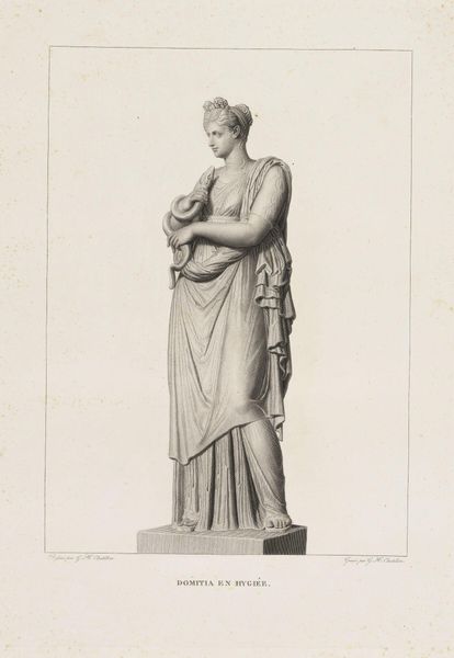 Curator: The figure feels as though it exists just barely—like a half-formed thought on paper, all ethereal and classically posed. Editor: Indeed. What you are perceiving is "Statue of a Woman with a Cornucopia," a pencil drawing traced by Reinier van Persijn around 1640. Curator: A drawing *of* a statue? I suppose that explains the sort of… absent quality, but that description certainly underplays its effect. She seems weighted, both literally by that absurd abundance of fruit but also, you know, metaphorically. Editor: The classical contrapposto—that elegant shifting of weight—does lend the figure a dynamic tension. You might also consider the symbolic register. The cornucopia, or horn of plenty, is a direct reference to classical antiquity. It signifies abundance and prosperity. Curator: Oh, I get the symbolism. Overflowing good fortune, right? But her expression is so... distant, almost mournful. It clashes with the happy fruits, don't you think? Makes me wonder about the hollowness of appearances, or maybe even just a sculptor's boredom halfway through a commission! Editor: Such visual tension invites us to reflect. Look at how Persijn, the artist, masterfully evokes texture using only subtle gradations of graphite. The drapery is particularly remarkable—note how he captures its weight and fall. It’s as much about the surface, the tangible presence, as it is about representing this allegorical ideal. Curator: Yes, that’s a gorgeous piece of drawing—I feel the light and shadow, the softness of the cloth... but she still looks profoundly unhappy to me! Is she burdened by all that she symbolizes? Or maybe she secretly yearns for, I don’t know, a decent sandwich instead of another peach? Editor: A whimsical thought! And yet, not entirely misplaced. The human element, that touch of emotion you observe, is precisely what animates the classical form and makes it resonate even now. Curator: So even marble goddesses get the blues sometimes. Good to know. Editor: Art reminds us that the grandest gestures are often laced with the quietest doubts.