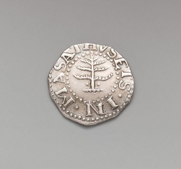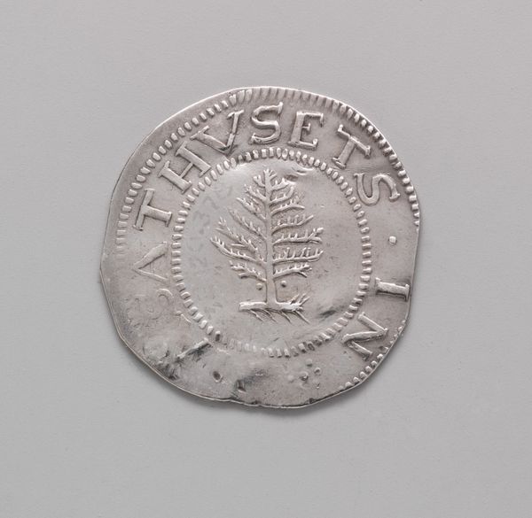 This silver shilling was produced in Boston by John Hull in the 17th century. It is a simple disc of hammered and cut silver. The surface of the coin has been imprinted with a tree, surrounded by lettering to denote its value. The material itself speaks volumes. Silver, often extracted through intense labor, especially in colonial contexts, was a global commodity. The coin's irregular shape reflects the rudimentary technology available at the time, as the means to create perfectly round coins had not yet arrived in the colonies. The slightly off-center image of a tree, and the somewhat crudely stamped lettering, emphasizes the distance from the centers of European power, where more sophisticated minting processes were common. The coin's very existence tells a story of nascent economic activity in the new colonies, far from the control of the British Empire. It serves as a reminder that even the smallest objects can embody larger narratives of labor, politics, and place.