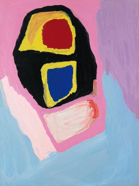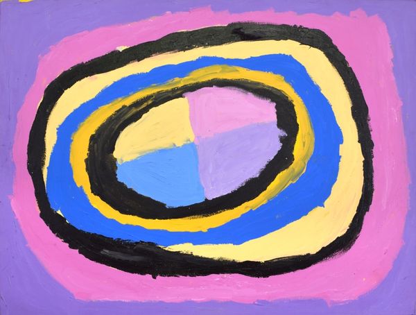 Editor: This is "Hunting Ground at My Father's Country," painted in 2005 by Sally Gabori. It’s an acrylic on canvas. I'm really struck by the boldness of the shapes and the unusual color palette. It feels very... powerful, but also a bit mysterious. How do you interpret this work? Curator: Gabori's paintings are powerful acts of cultural reclamation. Consider that she began painting in her 80s, depicting the landscape of Bentinck Island, her ancestral home. This painting isn’t just a pretty picture, but a visceral map – a cartographic assertion of Indigenous presence and knowledge violently disrupted by colonial forces and climate change. What do you think of when you hear the title “Hunting Ground”? Editor: Well, obviously it suggests a place to find food. But looking at these almost abstracted shapes... are we meant to see something beyond the literal act of hunting? Curator: Exactly. Think about what happens when a culture is forcibly displaced, how knowledge is transmitted and eroded. These shapes, colours, and compositions carry coded meanings, a visual language almost resisting erasure. Can you see any familiar shapes? Does anything about the design of the painting speak to themes of environmental concerns to you? Editor: Now that you mention it, I can see almost bird-like shapes, but abstract of course. Knowing that she painted this later in life after displacement makes it seem incredibly poignant. It's not just a landscape; it's a statement. Curator: Precisely. It challenges the traditional Western canon and inserts an Indigenous perspective, reminding us of the enduring legacy of dispossession and the vital need to listen to marginalized voices in art history. It serves as both documentation and celebration. Editor: I didn't see all of that at first. I was focused on the aesthetics, the colors, and lines. Thank you, I really learned so much today. Curator: Indeed. Art often hides these stories, waiting to be uncovered.