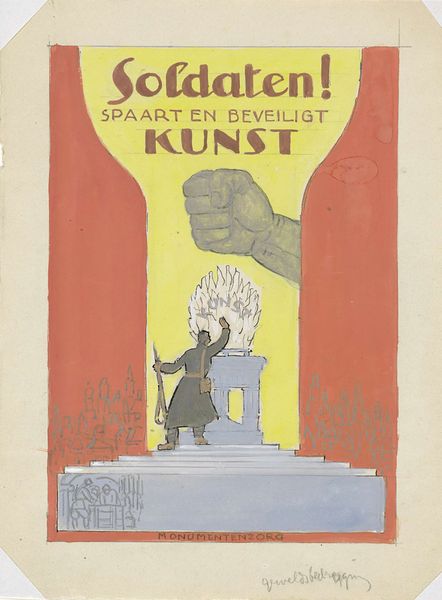 Editor: So, this is "The Eleven Executioners," a print and poster with typography by Thomas Theodor Heine. The piece is rather striking. The characters are cartoonish but with sinister undertones, especially the tall figure in green. How do you interpret its cultural significance, especially considering Heine's work often satirized German society? Curator: Well, look closely at those eleven figures, Editor. Aren't they almost grotesque? This piece probably reflects the anxieties and social commentary prevalent in pre-war Germany. The ‘executioners’ are rendered as these almost farcical figures, a satirical jab at authority and the looming specter of violence. Editor: So it’s about the socio-political climate? Is Heine saying something specific about the justice system or perhaps government? Curator: Precisely! Heine used his art as a platform. Think about what the "executioners" might represent—perhaps a critique of those in power who wielded authority with seemingly monstrous indifference. And the single figure on the right—could that represent the dehumanizing effect of such a system? The figure looks rather lonely, doesn't it? Editor: That's insightful. I initially saw only caricature but I didn’t really grasp its socio-political weight. The use of printing and typography—did that help disseminate his message to a broader audience? Curator: Absolutely. Printmaking, especially poster art, allowed Heine to reach a wider public than traditional painting ever could. The stark imagery coupled with bold typography forced viewers to confront these uncomfortable truths. The mass medium becomes the perfect vehicle for social critique. Editor: I've learned a lot about seeing beyond the surface in this print. Curator: And I hope you now appreciate the potent blend of art and social commentary that Heine so masterfully employed.
