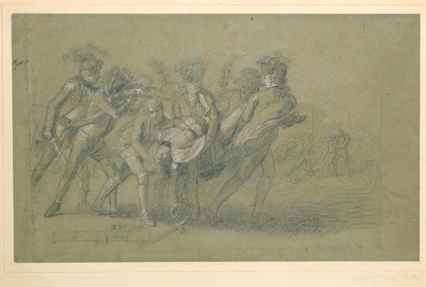 This is a preliminary drawing by Winslow Homer for his painting ‘Snap the Whip’ capturing a seemingly idyllic scene of rural childhood. Painted in the late 19th century, it reflects a nostalgic look back at simpler times following the Civil War, a conflict in which Homer served as an artist-reporter. The boys in this sketch, with their clothing and hats, embody a collective identity; their linked hands suggest unity and shared experience. Yet, the game they play, ‘snap the whip’, also implies risk, as seen in the figure who has lost hold and fallen. This imagery raises questions about social mobility and vulnerability. Homer’s work often touches on themes of American identity, the challenges of reconstruction, and the romanticization of childhood, while also hinting at the precariousness inherent in life. The image resonates with the emotional tension between freedom and control, unity and isolation, reflecting the complex realities of post-Civil War America.