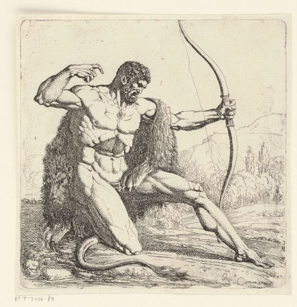 Damiano Pernati created this etching, "Hercules Separating the Rocks Calpe and Abila (The Pillars of Hercules)," sometime between the late 18th and early 19th centuries. During this time, Hercules was a popular figure, embodying masculine strength and virtue. Here, Pernati depicts Hercules performing one of his twelve labors: separating the mountains Calpe and Abila, thus creating the Strait of Gibraltar. But let's think about the implications of this powerful, virile male figure forcibly dividing the landscape. What does it mean to see nature as something to be conquered, reshaped according to the will of a (male) hero? Look at the tension in Hercules' muscles, the way he strains against the rocks. There's a violence here, an assertion of dominance. It makes me wonder: whose stories get told, whose bodies get celebrated, and at what cost? This image is an echo of larger cultural narratives about power, gender, and our relationship to the natural world.