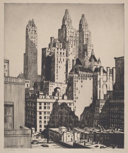 Anton Schutz created this etching of the New York Stock Exchange, an image that vibrates with the energy and ambition of early 20th-century America. Born in Bavaria, Schutz immigrated to the United States, drawn by the promise of its burgeoning industrial and financial power. His work often romanticized the American city, celebrating its architecture and bustling streets. Here, the imposing Stock Exchange building, with its classical facade, symbolizes stability and order amidst the frenzy of the market. Yet, as we look closer, it's impossible to ignore the social and economic disparities that this image papers over. The pursuit of wealth and progress often came at the expense of marginalized communities, whose labor and resources fueled this growth. Schutz's Stock Exchange freezes a moment in time where the narrative of American success was being forged, even as the costs were unevenly distributed.
