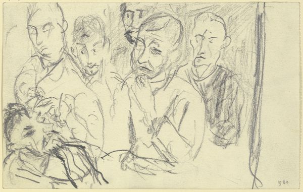 Editor: This is "Portrait Sketches," a 1920 ink and pen drawing by Lovis Corinth. The overlapping portraits give me a sense of raw energy and intense observation, like a glimpse into the artist’s mind. What do you see in this piece? Curator: Beyond just portraits, these sketches resonate with the societal shifts happening in post-World War I Germany. The fragmented composition and expressive lines seem to echo the fractured sense of identity and displacement many felt after such a cataclysmic event. Does the use of ink, a very immediate medium, amplify this sense of urgency to you? Editor: Definitely. There’s no room for correction, no hiding. Each line feels deliberate and reveals Corinth's thinking, but also society. What strikes you most about his choices? Curator: Corinth’s commitment to capturing human expression, even in its rawest form, speaks to his engagement with Expressionism. The rapid strokes seem to bypass traditional portraiture, inviting us to consider the psychological depths of his subjects, and, by extension, the trauma and anxieties of the time. Do you notice how the incomplete nature of the sketches reflects on the incompleteness of social healing? Editor: I see that now. They are all connected: the quickness, incompleteness, his choice of medium. I hadn't thought of that at first. Thanks! Curator: It’s crucial to remember that art often mirrors, and sometimes challenges, the realities of its time. Appreciating these contextual layers deepens our understanding of both the artwork and the society it reflects. Editor: Absolutely! Seeing it in that light gives it much more depth and complexity than I originally realized.
