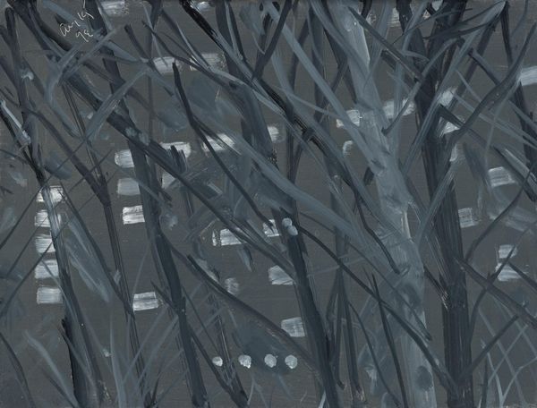 Editor: We're looking at Alex Katz's "Young Trees" here at the Tate. The green is so vibrant, almost overwhelmingly so. What kind of statement do you think Katz is making with this emphasis on color and form? Curator: I see this painting engaging with the broader history of landscape art and its complex relationship to ideas of nationhood and the environment. How does Katz’s flattened perspective and simplified forms challenge traditional landscape conventions? Editor: It feels almost like an advertisement for nature, reducing it to easily digestible blocks of color. Curator: Exactly! And considering the historical context, post-war consumer culture, and the rise of environmentalism, does this painting celebrate or critique our relationship with the natural world? Editor: I never thought about it that way. It definitely gives me a lot to consider regarding how art can reflect on culture. Curator: Indeed. It shows how Katz uses a deceptively simple style to engage with complex cultural ideas.
