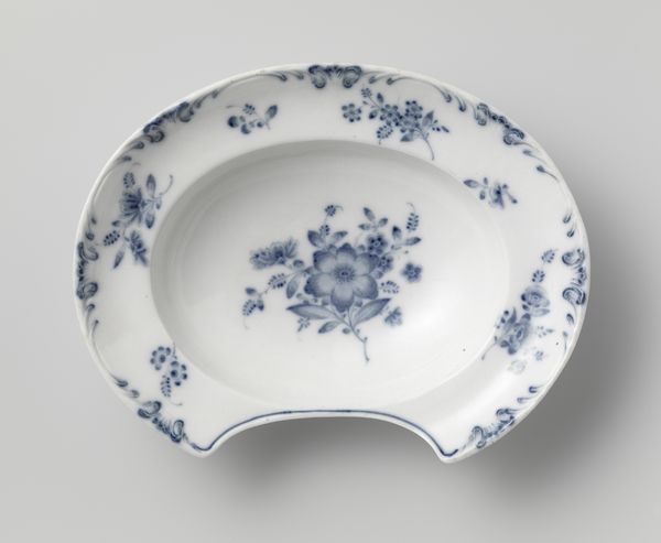 Curator: This object, a saucer, dates back to around the 18th century. While its creator is unknown, we do know that it's composed of ceramic and glass and is part of the Minneapolis Institute of Art's collection. Editor: The delicate spattering of cobalt blue on white reminds me of looking up at a summer sky dappled with fluffy clouds. It evokes a feeling of serene domesticity, a gentle start to the day with a cup of tea. Curator: That "serene domesticity" might actually be quite loaded, historically speaking. We need to consider the social contexts in which this type of ceramic was produced and used. Who had access to such refined objects? What did its presence signify about class and status? It speaks of colonialism and trade routes from China to the West. Editor: Yes, indeed. And these wares would likely have been traded precisely along such routes. The blue itself, its dispersal across the piece, could be read as visual traces of that cross-cultural exchange, the way one place, and its culture leaves its mark upon another. Curator: Exactly! That disruption you perceive is so indicative of the broader historical picture of this period – empires, colonialism, the exploitation of resources. Editor: I see that perspective, and I don't disagree. Yet, at the same time, I can't help but see this repeating droplet pattern, as perhaps symbolic of larger cosmic motifs or perhaps of celestial bodies across cultures. Curator: Well, in our interpretation, it's crucial not to separate the aesthetic appreciation from the political realities of the time, to ensure a richer, more complete, and more responsible dialogue with history. Editor: Fair enough. While my immediate impression might lean toward the beauty of the image, acknowledging that even beauty can be a product of exploitation encourages a richer and more critical way of seeing, which brings so many fresh perspectives into the museum.
